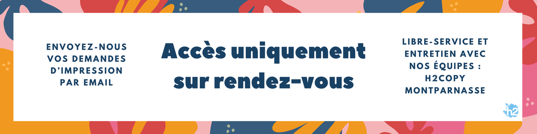 Notre centre h2copy Vaneau devient un centre de production avec ouverture restreinte à notre clientèle, le libre service disparaît, pour toute demande de rendez-vous, appelez-nous. Pour toute demande de copie ou photocopies à l'unité, vous tourner vers notre centre h2copy Montparnasse proche qui reçoit le public sans rendez-vous. h2copy Vaneau reçoit vos commandes par Email uniquement. Notre équipe vous permettra bien entendu de retirer vos productions imprimées (jour et horaire de mise à disposition communiqué) et continuera à traiter les commandes de ses clients habituels.